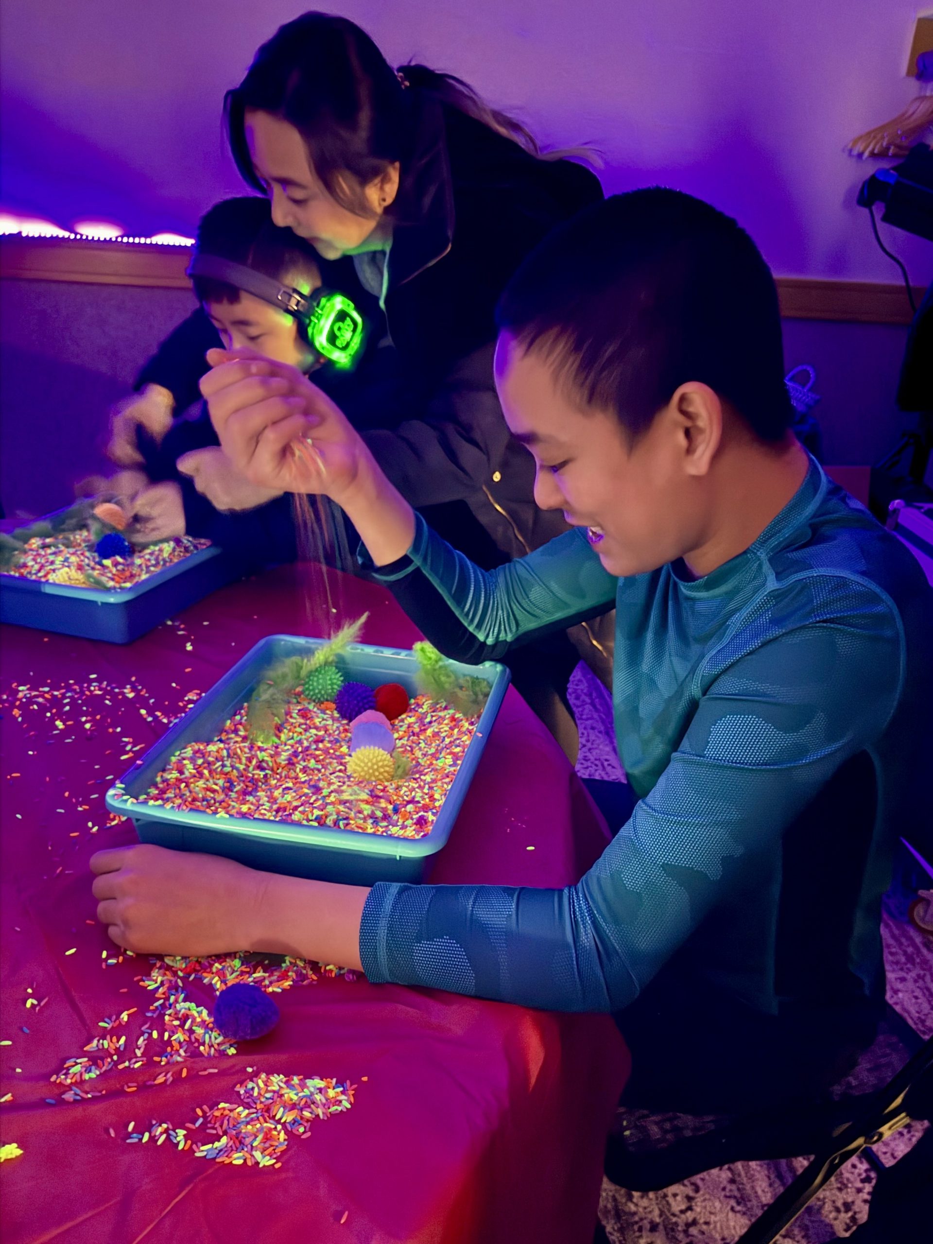 At each Birthday Circe, we have a Sensory quiet zone.  We understand that the crowd and loud noises can be overwhelming sometimes, we provide a safe space of all Friendship participants to color and do other quiet activities.
